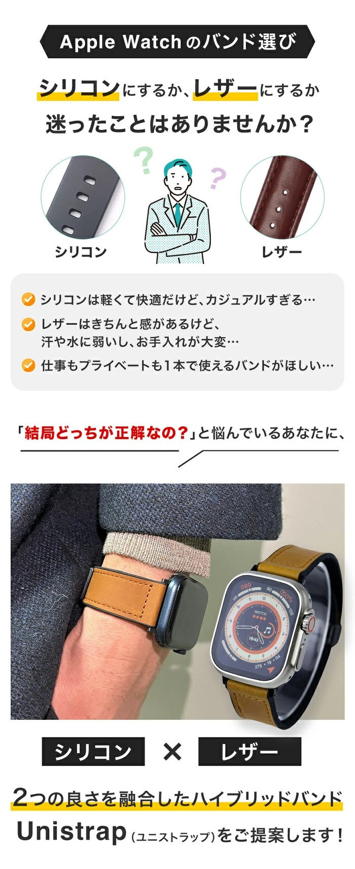 【シリコン派にもレザー派にも刺さる1本】アップルウォッチ レザーバンド Unistrap